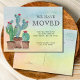 Cartão Postal De Anúncio Aquarela Cactus Mudamos para Nova Casa Mudança