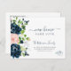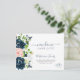 Elegantes flores novo lar mesmo amor anúncio de mudança cartão postal com um belo buquê botânico de peônia azul-marinho escuro e rosa, com folhagem verde e uma caligrafia elegante e moderna