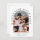 Convite de casamento moderno e elegante ou cartão postal de anúncio de casamento menor para informar familiares e amigos de que você se casou em uma pequena cerimônia de casamento e convidá-los agora a uma recepção de casamento. A frente apresenta sua foto do dia do casamento em uma moldura arqueada e "Festa Feliz para Sempre" em tipografia elegante. Sob sua foto, você pode adicionar seus primeiros nomes e data de casamento. No verso, você pode personalizar sua mensagem em mais detalhes e adicionar detalhes da festa ou recepção e seus nomes em uma caligrafia semelhante a uma assinatura.
