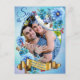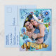 Buquê de Centáureas azuis em aquarela sobre uma moldura de foto de papel criativo para personalizar. Este design moderno de papelaria é perfeito para qualquer celebração ao ar livre em um jardim de verão, como um casamento.