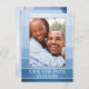 Elegante cartão postal Salvar a data com a sua própria foto emoldurada por um design ton sur ton azul pintado com um revestimento prateado.