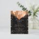 Um fundo na moda preto. Decorado com brilho dourado escuro e balões. Personalize e adicione um nome e detalhes da parte. O nome é escrito com um script de estilo manuscrito