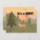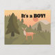 Este design apresenta um adorável veado macho em uma paisagem montanhosa. O texto da frente diz "É um menino!"