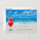 Cartão Postal De Anúncio Bebida Vermelha Praia do Oceano Salve a Data