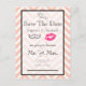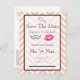 Um casamento estilo moderno salve o cartão de data com lábios de kissy cor-de-rosa e uma ilustração retrógrada do bigode. Colocado sobre um fundo de cromo de pêssego. Personalize com seus detalhes de casamento na frente e atrás.