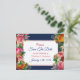 Rosas azuis e borrifúndios e flores florais Salve o cartão postal de data. Uma maneira barato de dizer ao pessoas que você está noivo e marcar uma data!