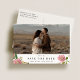Anuncie seu dia especial com este charmoso cartão postal Salvar a data, combinando elegância e praticidade. Apresentando um belo layout de foto de cheio na frente, complementado por delicados sotaques florais, este cartão postal é perfeito para casais que querem um design romântico mas moderno. A parte traseira inclui espaço para uma mensagem pessoal, fazer fácil compartilhar seu entusiasmo com amigos e familiares. Recursos: Destaques do Design: Layout de foto de Cheio com sotaque floral cor-de-rosa para um toque romântico Personalizável: Adicione seus nomes, data de casamento e detalhes de local Formato do Cartão Postal: Não são necessários envelopes - salve na postagem enquanto é um Material de alta qualidade ecológico: Impresso em estoque de cartão resistente, premium Perfeito para: Casamentos modernos, rústicos ou com temas florais Simplifique os com este cartão-postal maravilhoso que é na moda e funcional.