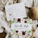 A Elegante aquarela floral salva os cartões postais de data com a inscrição "salve a data" na caligrafia chica com seus nomes e data de casamento embaixo, acentuadas pelas bordas superior e inferior das flores aquáticas em burgundy marsala e rosa pincelado com folhas verdes e folhagem. Cartões postais inversos para mostrar os detalhes adicionais da data, incluindo o site do casamento, com seu endereço de retorno e espaço para o endereçamento do destinatário.