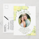 Este casamento rústico Salve o cartão postal da Data apresenta um elegante design floral de aquarela com sua foto em um quadro oval cercado por belos rosas pintados à mão e flores em tons de limão e amarelo canário. A tipografia apresenta a inscrição em rico com espaço para seus nomes, data do casamento e local. As costas têm espaço para uma nota curta, assim como um gráfico fofo de "lápis em nós". Este cartão de chic na moda boyo é uma maneira maravilhosa de deixar sua família e amigos saberem sobre seu próximo casamento.