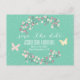 Cartão Postal De Anúncio Borboleta Verde Primavera & Flores Salve a Data