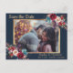 Cartão Postal De Anúncio Borgonha Azul Floral Foto Salve o Data