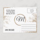 Glamoroso, chique e elegante falso brilho dourado impresso em um fundo branco, cartões postais de Save-the-Date casamento. Este design clássico e sofisticado é perfeito para o casal que se casa moderno e elegante. Personalize com sua própria mensagem na frente, bem como um monograma inicial personalizado no verso. Todo o design de impressão de foto.