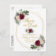 Cartão Postal De Anúncio Burgundy Floral Greenery Dourado Salvar a Data