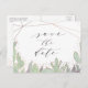 Terraço Geométrico de Cactus e Suculentas e ilustrações em Aquarela e Design de Casamento com plantas pintadas à mão em aquarela, cactus e suculentas, com acentos de folha metálica de cobre e moldura superior de terraço geométrico, e elementos desenhados à mão e pontos. Um visual divertido e moderno para um casamento de primavera ou verão, deserto ou local botânico: cores verde folhoso, azul-teal, azul e roxo combinados com folha de bronze de cobre e uma fonte de letra de pincel moderno e tendência - Cartões Postais de Casamento "Save the Date"!