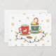 Vestes de Natal deliciosos e confortáveis com xícaras festivas de café e chocolate quente, cercados por luzes brilhantes e flocos de neve delicados.