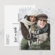 Cartão postal de data de salvamento personalizável com caligrafia moderna manuscrita e padrão de diamante preto e branco. Personalize este cartão plano adicionando sua própria foto e detalhes.