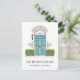 Anúncios encantadores e modernos e em movimento deixam amigos e familiares saberem sobre sua nova casa doce! Design apresenta uma ilustração esboçada da porta aqua flanqueada com arbustos verdes, com "venha bater na nossa porta" embaixo. Personalize com seu novo endereço e nome da família ou nomes no verso, com espaço para endereçamento do destinatário.