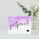Cartão Postal De Anúncio Casamento Adiado com Aquarela Roxa