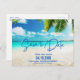 Cartão Postal De Anúncio Casamento Azul De Destino Da Praia Salvar A Data