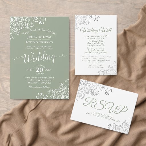 Sage Green with Faux Silver Elegant Wedding SuiteCriado por Cat Ritchie