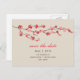 Um simples casamento moderno salve o cartão postal com uma ilustração inspirada pela aquarela de um galho de cereja rosa florescendo sobre um fundo de branco profundo. Texto vermelho e marrom personalizável. Procure convites para casamento, cartões de Rsvp, correio e etiquetas de endereço na Paperie de Jill.