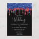 Convide seus amigos e família para comemorar seu dia especial com esses cartões de convite para casamento de preto vermelho e azul. Personalize com seus nomes e todas as suas informações de casamento. Esta coleção de casamentos tematizada da bandeira americana será uma favorita entre todos os militares, veteranos e forças armadas. Visite nossa coleção patriótica de casamento para convites para casamento vermelho branco e azul, favores de casamento, suprimentos de festa. COPYRIGHT © 2020 Judy Burrows, Black Dog Art - Todos Os Direitos Reservados. Cartão-postal de lançamento de lançamento de lançamento do Elegante Black Red Blue Glitter