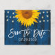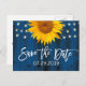 Cartão Postal De Anúncio Casamento de Girassóis Rústicos Azul Marinho Save