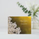 Notifique a família e os amigos do seu próximo casamento no verão com o casamento local desta Rainha Anne, salve o cartão postal que mostra uma imagem aproximada das pequenas flores brancas do lugar da Rainha Anne na borda esquerda misturando-se em um fundo de ouro - por katz_d_zynes | Parte da coleção Casamento de Locais da Rainha Anne de Katzdzynes > https://www.zazzle.com/collections/119024645521807013