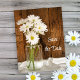 Faça um tom casual, mas clássico, para a sua cerimônia de casamento e recepção do país com o encantador Casamento de Mason Jar e White Daisies Barn Salve o Cartão-Postal de Data. Este bonito casamento de fazenda personalizada ou estilo rancho mantém o cartão de data com uma fotografia floral quase melhorada digitalmente de um pote de latas de vidro cheio de flores margaridas brancas e um fundo de madeira marrom-curada. Inspo perfeito para seu evento de festa no celeiro.