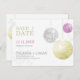 Os ornamentos paisley modernos em cor prateada, dourada e roxa com flocos de neve cônicos ilustrados no Casamento personalizado Salve os Cartões-postais de Data. Cartões salve a data bonitas e elegantes para o seu casamento no inverno especial. ((Você pode encontrar os essenciais de casamento e favores nesta loja, Bridal Heaven. Entre em contato com ujean4791@gmail.com para obter trabalho personalizado e/ou coordenar papelaria de casamento.)