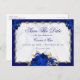 Cartão Postal De Anúncio Casamento de Rosas Dourados Florais Real Azul de L