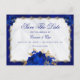 Rosas falam de amor, então deixem esses rosas azuis lindos amarrados em cetim branco enquadrado por um filigre dourado, anunciem elegantemente sua próxima data de casamento. O texto pode ser facilmente personalizado, e o fundo é simulado em metal azul real para melhorar o luxo. Veja o resto da elegante suíte de casamentos florais azuis e dourados na coleção.