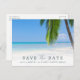 Prepare seus convidados para o seu grande dia com nossos cartões-postais "Elegant Beach Wedding" (Casamento Elegante na Praia). A frente deste cartão-postal apresenta uma bela fotografia de uma palmeira e uma praia tropical imaculada. Com sua areia e águas cristalinas e turquesa, esta imagem transporta seus convidados para um oásis sereno e transmite instantaneamente a beleza do destino escolhido. Personalize seu cartão-postal adicionando os detalhes do seu casamento na frente e no verso do cartão.