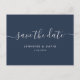 Anuncie sua festa de casamento marinho azul e prata para sua família e amigos com esse casamento minimalista, mas elegante, salve os cartões postais. Personalizar facilmente online. Itens correspondentes disponíveis para complementar este cartão postal de data moderno.