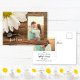 Defina o tom para o seu casamento casual, porém elegante, em estilo rural ou fazenda com o charmoso cartão postal de Save the Date de Casamento no Campo com Margarida Branca e Madeira de Celeiro. Este convite personalizado de casamento com tema ocidental rústico chic apresenta uma fotografia floral encantadora de uma flor de margarida branca e madeira de celeiro marrom desgastada com um prego enferrujado. Personalize-o com os nomes do casal, data do casamento e foto.