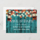 Cartão Postal De Anúncio Casamento outono Rustic Lantern Teal Salva a Data