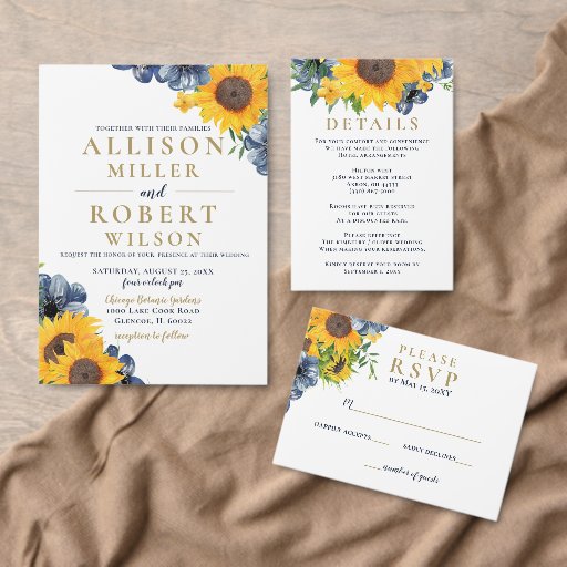 Watercolor Navy Blue Sunflower Rustic Wedding Criado por Maria G