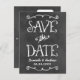 Cartão postal único e Whimsical, salve os anúncios de data e apresenta um design de texto de aparência de giz branco personalizado no fundo da lousa com textura rústica com fontes de estilo manuscrito que têm aparência de giz branco.