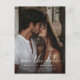 Cartão-postal de lançamento de casamento simples com o script mínimo moderno - apresentando sua foto com a tipografia moderna e elegante do roteiro.