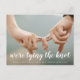 Cartão postal de salvar a data com tema náutico com sua foto horizontal em tela cheia e uma sobreposição de texto com as palavras, "estamos dando o nó" em uma fonte manuscrita branca. Abaixo estão seus detalhes em uma única linha de texto. Adicione seu endereço de retorno e mensagem pessoal no verso. Um design simples e moderno que faz da sua foto a principal característica.