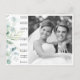 Arranjos delicados de folhagens inspirados na natureza, incluindo eucalipto goma azul com salpicos de dourado e contornos de folhas douradas, juntamente com layouts de design únicos, tornam este conjunto de casamento uma escolha emocionante para qualquer época do ano. O cartão postal de agradecimento de casamento mostrado aqui apresenta uma bordadura arejada ao lado da sua foto na frente, sua mensagem pessoal, os nomes dos noivos e a data do casamento no verso com fundo de aquarela. Visualize o link da coleção nesta página para ver todos os itens correspondentes neste lindo design ou procure por ID817 para ver outras peças e opções de cores para este conjunto.