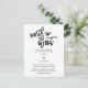 Para quando as circunstâncias significam que, infelizmente, tornou-se necessário mudar a data do seu casamento, esta é uma maneira conveniente de informar aos seus convidados a mudança de planos e a nova data o mais rápido possível. Este design artístico tem um script elegante no topo Vale a Pena Esperar com um motivo de coração. O resto do texto você pode personalizar facilmente.