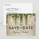Cartão Postal De Anúncio Castelo Rústico Pedra Igreja Luzes Salvar a Data