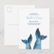 Cartão Postal De Anúncio Cauda de Baleia Azul Aquarela Salvar a Data