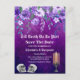 Roxo Caveira Salva a Data Casamento de Halloween O Cartão postal apresenta um fundo púrpura gótico, arranjo floral roxo, crânio, velas e um modelo de texto .Um design perfeito para o casamento de temas de Halloween.Clique no botão personalizar para personalizá-lo com seu texto ou nome.Visite gentilmente minha loja " loveyouart" para outros designs ou similares.