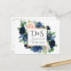 Cartão Postal De Anúncio Chic Blooms | Marinho romântico Casamento azul e b