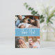 Personalize este cartão postal de agradecimento de bebê em colagem vertical com suas fotos favoritas. O cartão postal é perfeito para expressar sua emoção ao anunciar o nascimento do seu segundo filho e enviar a gratidão da sua família ao mesmo tempo. As palavras, fotos, saudação e despedida podem ser facilmente personalizadas conforme necessário. Formato vertical com um bloco azul,