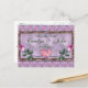 Bela maneira de enviar seus anúncios de Salve a Data, economizando dinheiro e ainda sendo elegante. Apresenta um painel de vitral criado digitalmente em lavanda com rosas e corações. Postagem correspondente disponível.