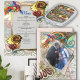 Cores brilhantes e vivas com padrões alegres podem adicionar vibração aos espaços de entretenimento ou ser um pano de fundo para celebrações e encontros. Crie cartões de convite exclusivos e personalizados com esta criação de rabisco para convites de casamento personalizados.