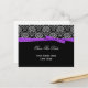 Damasco Preto e Branco Antigo com Fita e Laço Roxo FAUX para Save The Dates para todas as Ocasiões - personalize com suas próprias informações. Estes são perfeitos para qualquer ocasião, desde Casamentos até Aniversários de 16 anos e desde Festas de Aniversário até Chás de Noiva. Se você precisar mover o texto ou alterar o tamanho, cor ou texto, clique em Personalizar. Observação: esta não é uma fita ou laço real, mas uma imagem gráfica. A imagem é impressa plana.